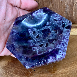 This stunning hand carved and polished Chevron Amethyst Hexagonal bowl is just beautiful