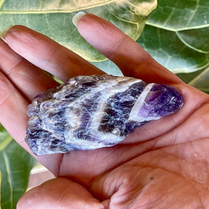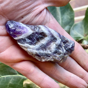 Chevron Amethyst is a combination of Amethyst and White Quartz, mixed together in a V-striped or banded pattern. Chevron Amethyst combines the strengthening and enhancing qualities of Quartz with the stress relieving qualities of Amethyst. This symbiotic combination of minerals lends itself to a wonderfully spiritual stone, which is great for gently removing the veils that obscure some of the hidden meanings in life.
