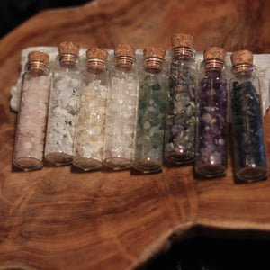 This set of 8 Crystal chips come in there own glass viles with cork stoppers.