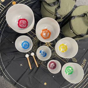 Our stunning Crystal Singing bowls come as a set of 7 in padded travel bags